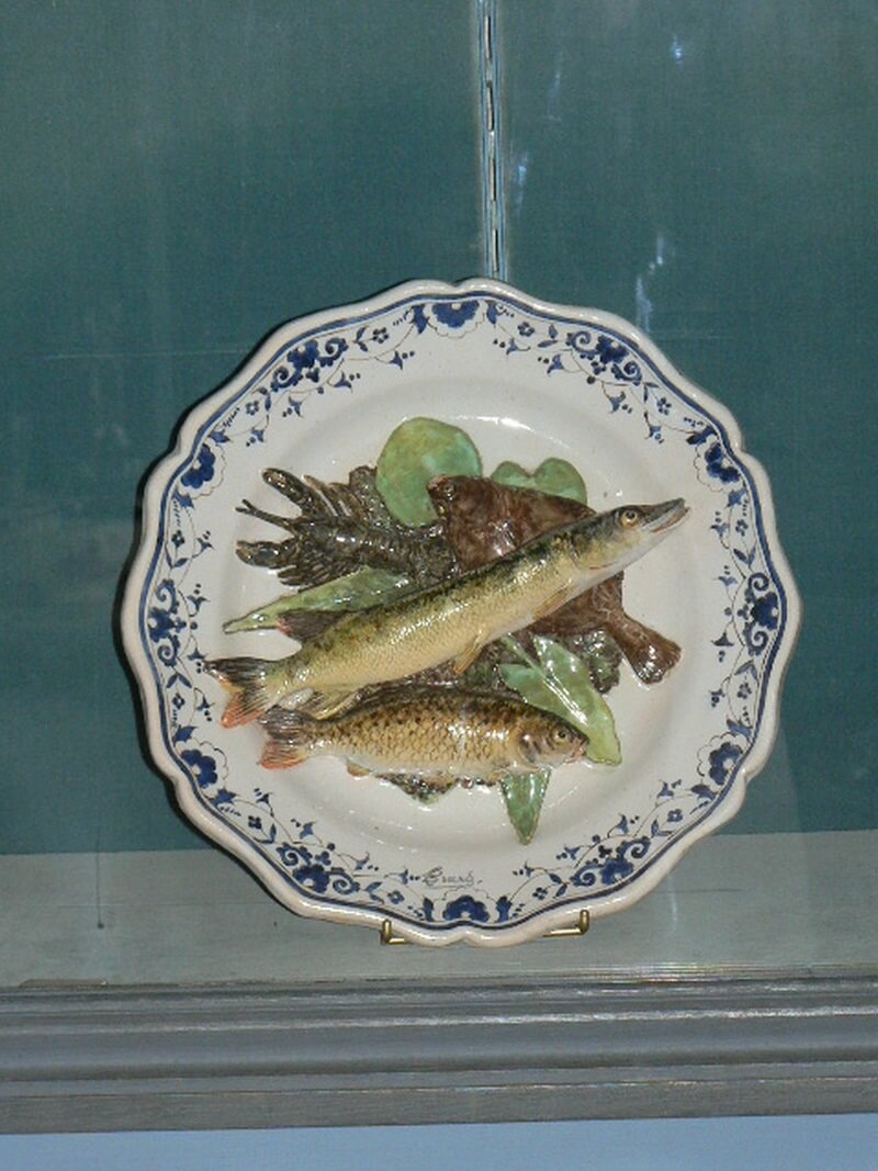 Cette collection très éclectique ne pourra que satisfaire votre curiosité. Vous y trouverez du matériel ancien comme les hameçons gallo-romains, les premiers moulinets, les magnifiques cannes en bambou refendu ou encore les étonnants panneaux de grands fabricants de matériels issus de la révolution industrielle, présentés aux expositions universelles. Vous découvrirez la symbolique du poisson dans toutes les civilisations du monde, ainsi que quelques belles œuvres d’art comme l’impressionnante barbotine de Charles Jean Avisseau, céramiste tourangeau du 19e et suiveur de Bernard Palissy, la grande nature morte de Guillig, peintre flamand du 17e ou les nombreuses estampes de Daumier et autres caricaturistes du 19e siècle qui vous feront sourire. Les arts de la table sont illustrés par de nombreux plats en céramique très décorés, ou beaucoup plus simples, prêts à passer au four.